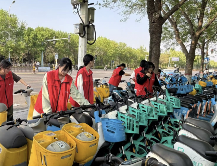 社团成员在指导教师带领下,精神饱满地投入到各项服务工作中。植物园周边停有大量共享自行车,摆放不整齐或者占道停放,既容易造成安全隐患,又影响城市形象。志愿者们迅速行动起来,将一辆辆共享自行车整齐地摆放到指定区域,并按照颜色、品牌分类排列,让原本杂乱无章的停车区域变得井然有序。